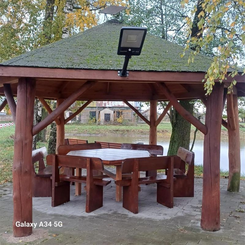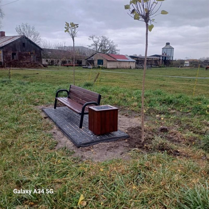 W ramach przedsięwzięcia zakupiono oświetlenie solarne altany, ławki wolnostojące i kosze na śmieci, wykonano z kostki brukowej utwardzone podłoże pod ławkami i koszami, środkami konserwującymi zabezpieczono stoły i ławki w altanie oraz wykonano nasadzenia z roślin ozdobnych.