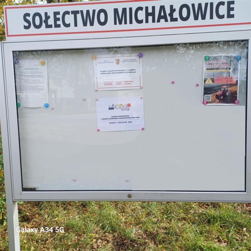 Projektu sołectwa Michałowice pn.: „Zagospodarowanie i rewitalizacja miejsca spotkań w centrum wsi” sfinansowanego ze środków udzielonej dotacji z budżetu Województwa Łódzkiego